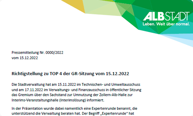 Albstadt ist schön und lebenswert – und trotzdem sind die Herausforderungen der Zukunft gewaltig. Als größte Industriestadt im Kreis spürt Albstadt wirtschaftliche Schwankungen unmittelbar. In wirtschaftlich so schwierigen Zeiten wie jetzt muss die Stadt alles Erdenkliche tun, um Bürgerinnen und Bürger zu entlasten, die Wirtschaft am Laufen zu halten und gleichzeitig die Infrastruktur der Stadt zu gewährleisten.